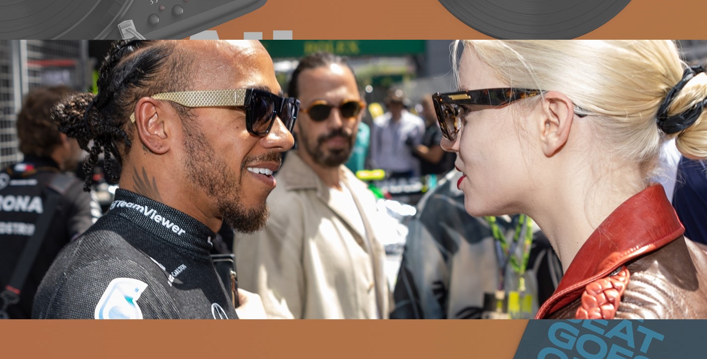 Η ηθοποιός Anya Taylor-Joy (Furiosa-Mad Max Saga) μόνη αλλά και μαζι με τον Lewis Hamilton.
