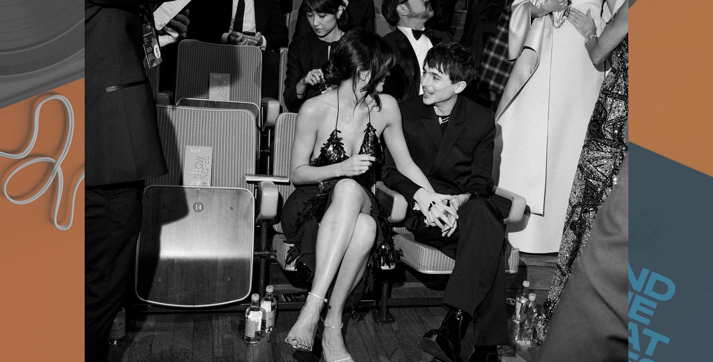 Το ζευγάρι επέλεξε εμφάνιση στα μαύρα, με την Jenner να φοράει μια vintage backless τουαλέτα του John Galliano και τον Chalamet ένα Bottega Veneta κοστούμι Bottega.