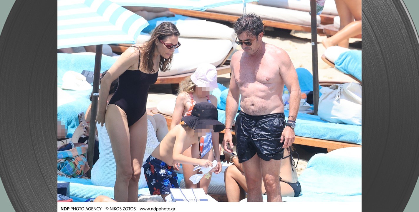 Στιγμές χαλάρωσης έζησαν σε παραλία της Μυκόνου, η Βίκυ Καγιά και ο Ηλίας Κρασσάς μαζί με τα δύο παιδιά τους.