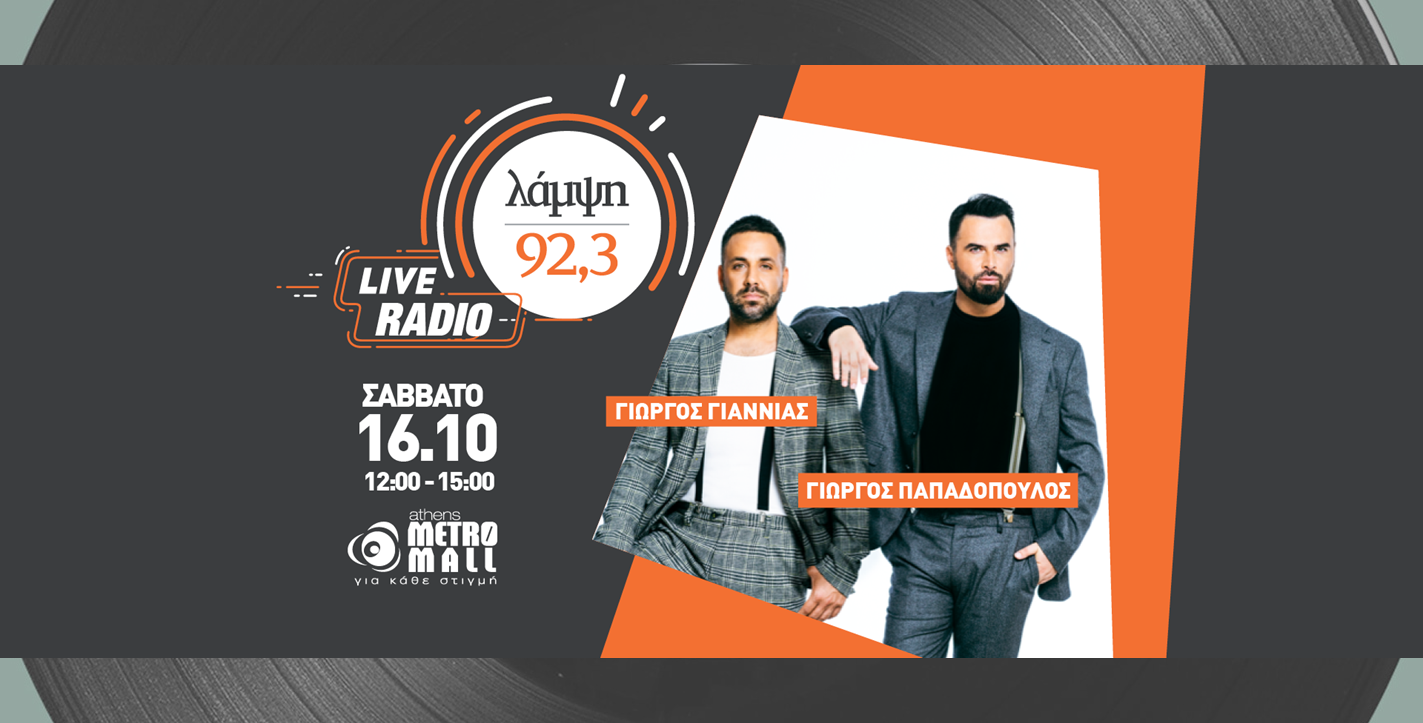 Το Σάββατο 16 Οκτωβρίου, ο 92.3 Λάμψη υποδέχτηκε σε ένα ιδιαίτερο live radio show στο Athens Metro Mall, τον Γιώργο Γιαννιά και τον Γιώργο Παπαδόπουλο.