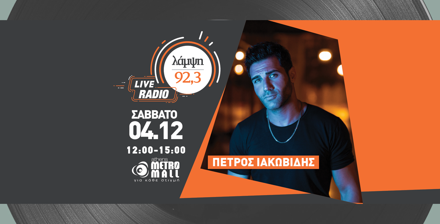Συγκεκριμένα, το Σάββατο 4 Δεκεμβρίου ο 92.3 Λάμψη υποδέχεται στο Athens Metro Mall τον αγαπημένο Πέτρο Ιακωβίδη, σε μία μοναδική συνέντευξη στην Άννα-Μαρία Ψέμμα.