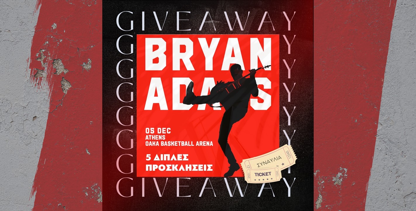 5 Τυχεροί θα κερδίσουν από μία διπλή πρόσκληση για την συναυλία του Βryan Αdams στο Κλειστό Γήπεδο Ο.Α.Κ.Α., την Τρίτη 5 Δεκεμβρίου.