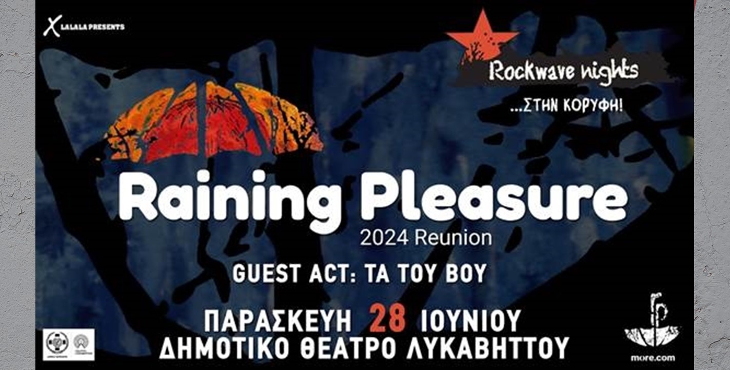 Η κορυφαία αγγλόφωνη Ελληνική μπάντα επιστρέφει για ένα πολυαναμενόμενο reunion. 14 χρόνια μετά, οι Raining Pleasure είναι ξανά εδώ και ανεβαίνουν στη σκηνή του Θεάτρου του Λυκαβηττού για να ξανασυναντηθούμε και να περπατήσουμε μαζί στις παράξενες ζωές μας.