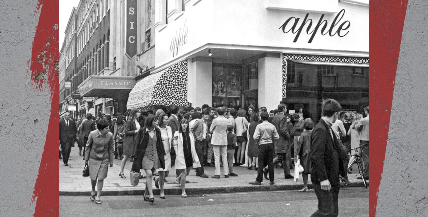 Στις 7 Δεκεμβρίου του 1967 άνοιξε και επίσημα η Apple Boutique των Beatles με την ξεκάθαρη αντίληψη ότι τα πάντα ήταν διαθέσιμα προς πώληση. Ο Paul McCartney συγκεκριμένα είχε πει πως ήταν ένα όμορφο μέρος, όπου όμορφοι άνθρωποι μπορούσαν να αγοράσουν όμορφα πράγματα. Ο John Lennon είχε δηλώσει πως έψαξαν αρκετά πριν προχωρήσουν σε αυτή την κίνηση, γιατί εάν ήταν να κάνουν κάτι επιχειρηματικό, θα έπρεπε να είναι κάτι που πραγματικά θα τους ενδιέφερε, αν και μετά χαρακτήρισε τα πάντα μέσα σε αυτό το μαγαζί σαχλά... Τον σχεδιασμό της boutique ανέλαβε η εταιρεία The Fool, στην οποία δόθηκε κεφάλαιο 100.000 λιρών, ώστε να σχεδιάσει το μαγαζί, να το γεμίσει με προϊόντα και να διακοσμήσει ολόκληρο το κτίριο. Ένας λοιπόν, από τους ιθύνοντες της The Fool, ο Barry Finch, προσέλαβε ορισμένους φοιτητές καλών τεχνών να ζωγραφίσουν ψυχεδελικά σχέδια στην μπροστά εικόνα του κτιρίου στις 10 και 12 Νοεμβρίου εκείνης της χρονιάς. Βέβαια, το συμβούλιο του Westminster τους είχε αρνηθεί αυτή την ελευθερία, αλλά οι ίδιοι προχώρησαν ούτως ή άλλως. Φυσικά, δύο εβδομάδες μετά τα εγκαίνια, η εταιρεία έλαβε εντολή να βάψει ξανά το κτίριο, ένα από τα πρώτα σημάδια της πολυτάραχης ύπαρξης της Apple. Management πάντως στην boutique έκανε άνθρωπος από το σχολικό περιβάλλον του Lennon, ο Pete Shotton μαζί με την αδερφή της Pattie Harrison, την Jenny. Η εμπορική αποτυχία βέβαια αυτού του εγχειρήματος οδήγησε με μαθηματική ακρίβεια στο κλείσιμο της επιχείρησης μετά από μόλις 8 μήνες λειτουργίας, με το κλέψιμο να είναι το βασικό πλήγμα στα οικονομικά της boutique. Τα ρολά κατέβηκαν στις 31 Ιουλίου 1968.
